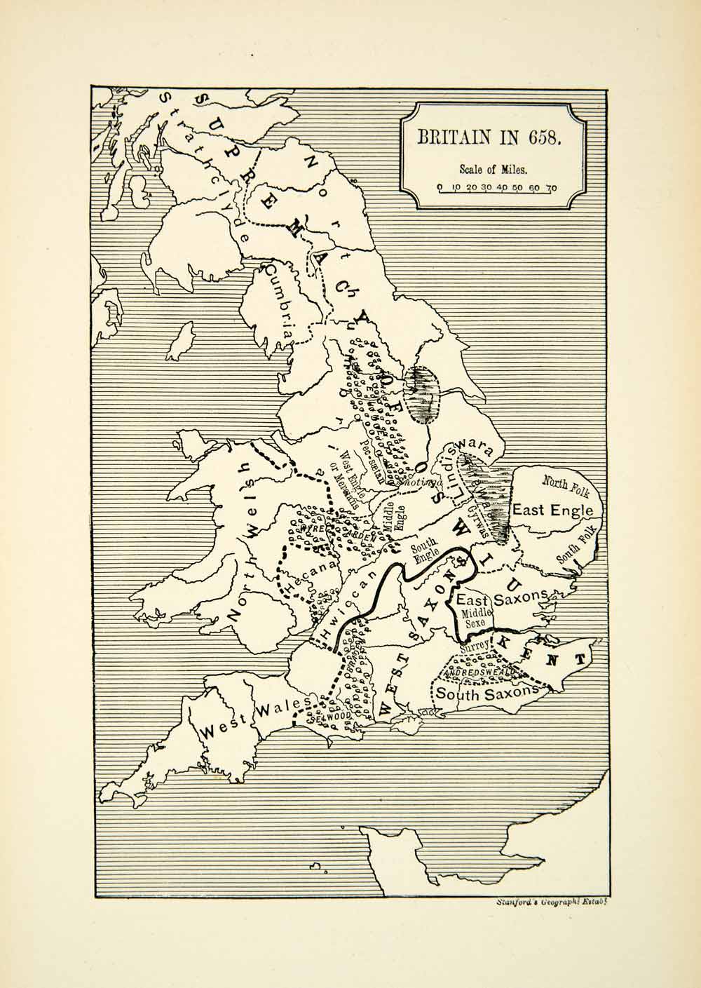 This is an original 1882 black and white relief line-block map of Britain as it appeared in 658.