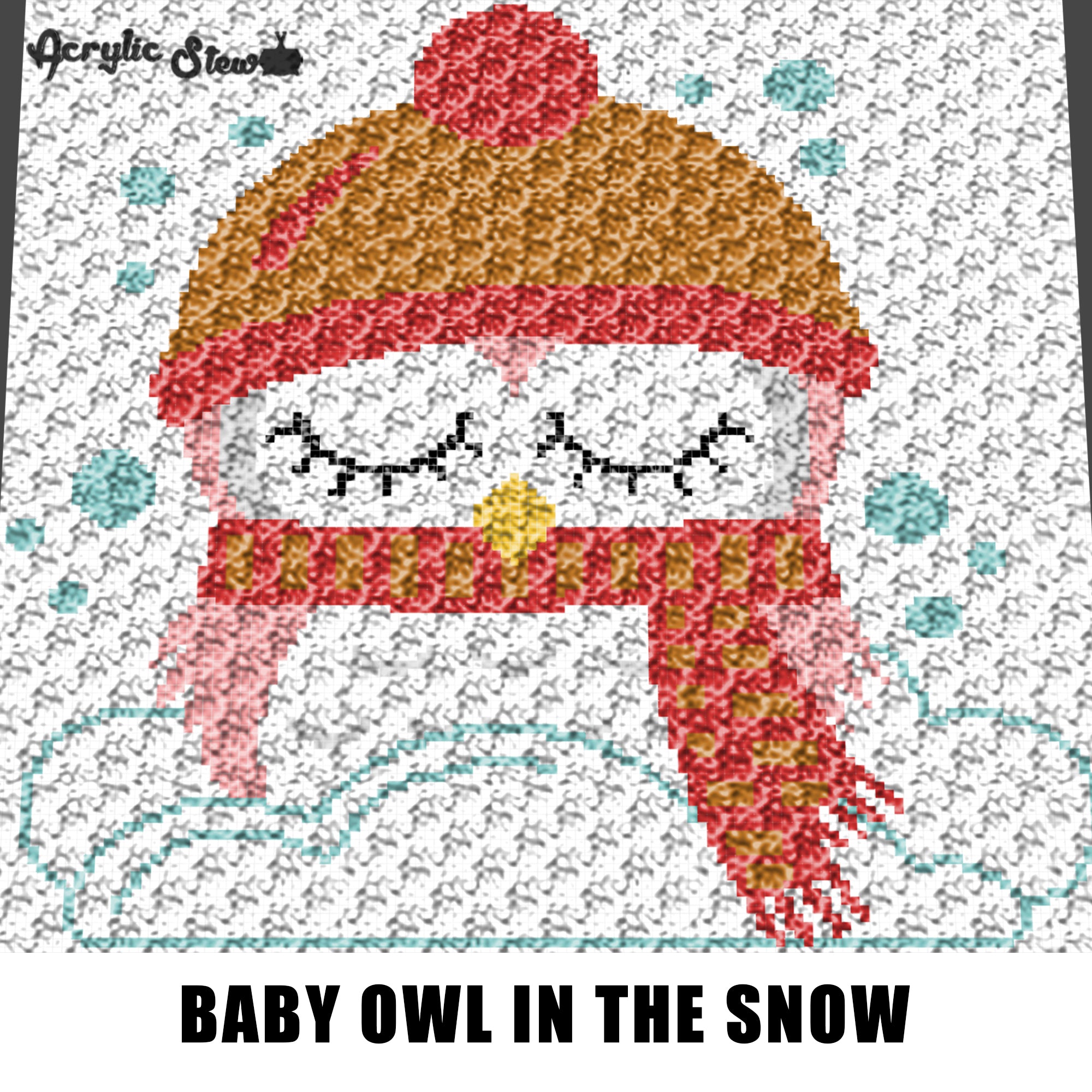 Gorgeous baby owl wearing a super cute scarf and hat sitting in the snow graph chart pattern by Acrylic Stew is a graph that can be used to crochet a blanket using C2C (Corner to Corner), TSS (Tunisian Simple Stitch) and other techniques. Alternatively, you can use this graph for knitting, cross stitching and other crafts.