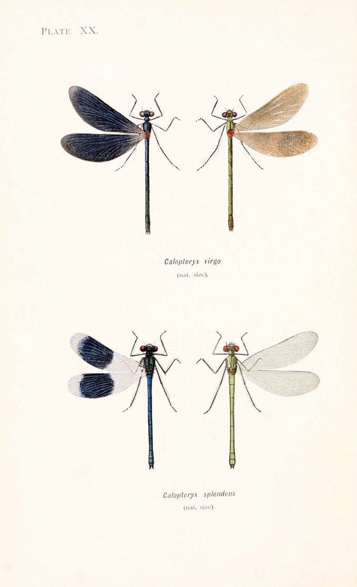 British dragonflies (Odonata)London,L.U. Gill,1900.|Dragon-flies “Great Britain” Odonata Smithsonian Institution Libraries SIL |taxonomy:binomial=Calopteryx virgo | taxonomy:binomial=Calopteryx splendens | artist:name=William John Lucas | artist:viaf=75919657 Entomology Insects Damselfly | Smithsonian Institution Libraries | geo:locality=Great Britain |